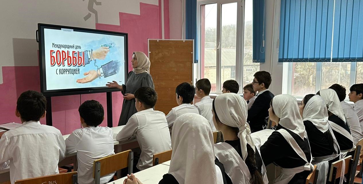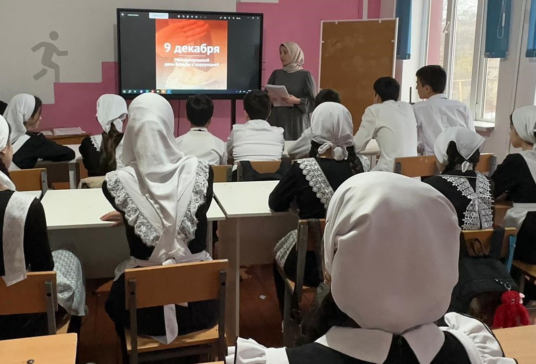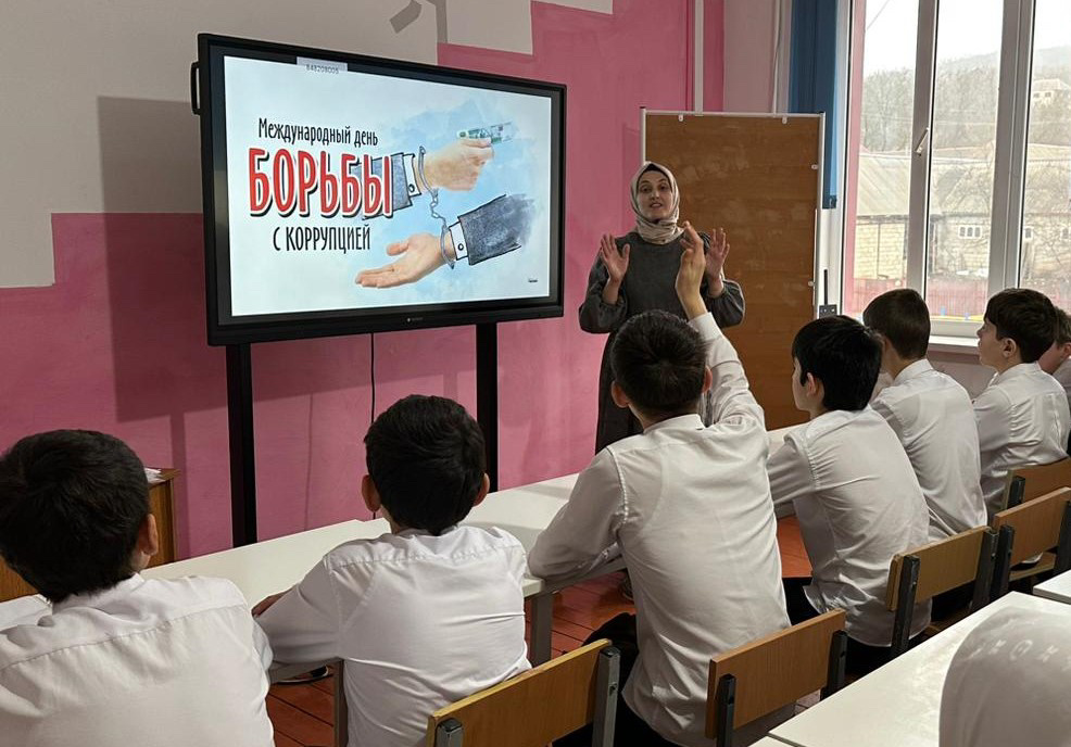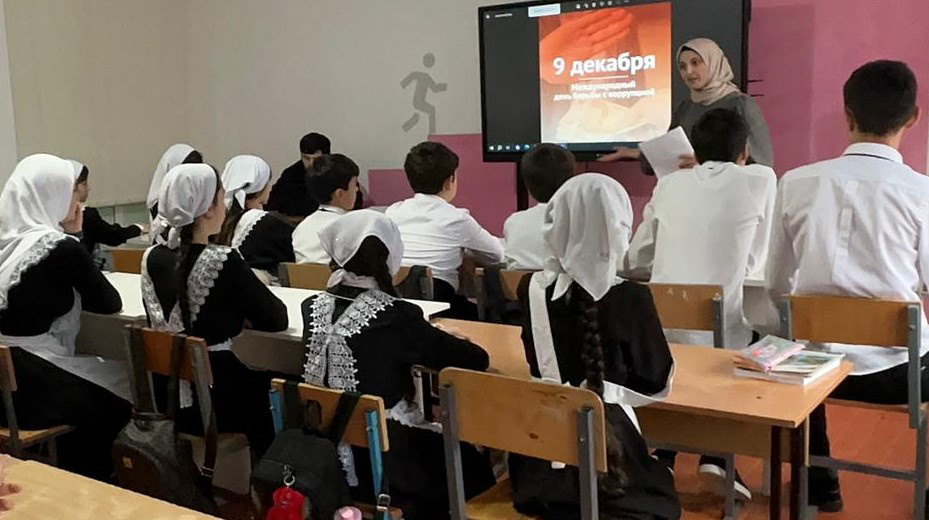 05 декабря 2023 г. в МБОУ "СОШ им.В. Г. Гайтемирова с.Замай-Юрт" с целью формирования у обучающихся представления о понятии «коррупция» и пагубности коррупционной деятельности а также донести до обучающихся способы, методы и формы борьбы с коррупцией в современной России, заместитель директора по ВР Джамалуева М.В., провела внеклассное мероприятие с учениками старших классов на тему «9 декабря-Международный день борьбы с коррупцией».