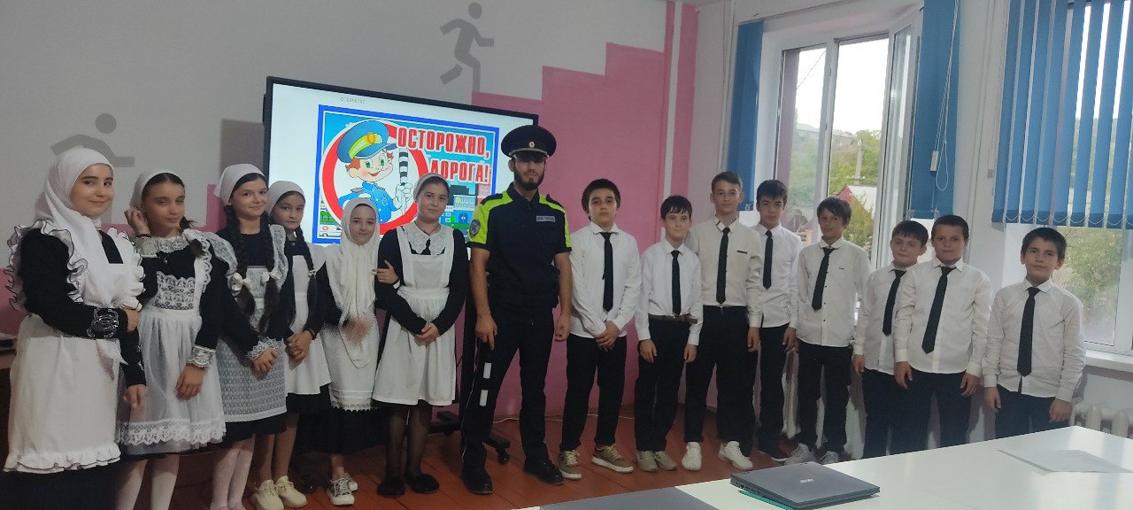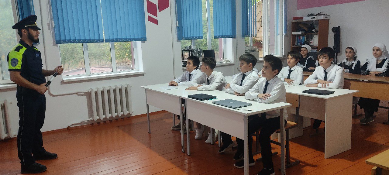 03.05.2024г. в МБОУ « СОШ им.В.Г.Гайтемирова с.Замай-Юрт», сотрудник ГИБДД Инуркаев И.В. провел профилактическую беседу с обучающимися 7-х классов " Осторожно, дорога!"