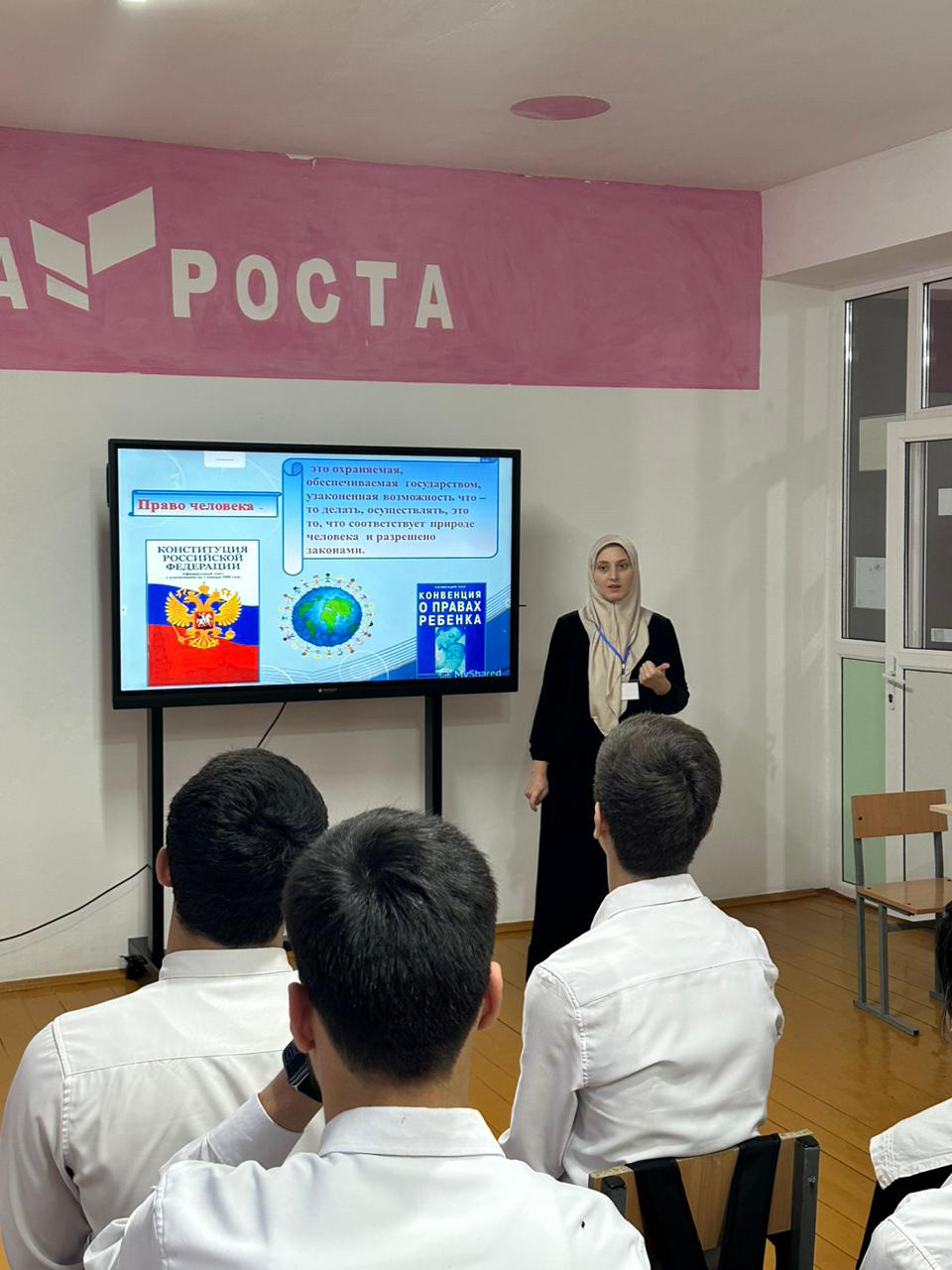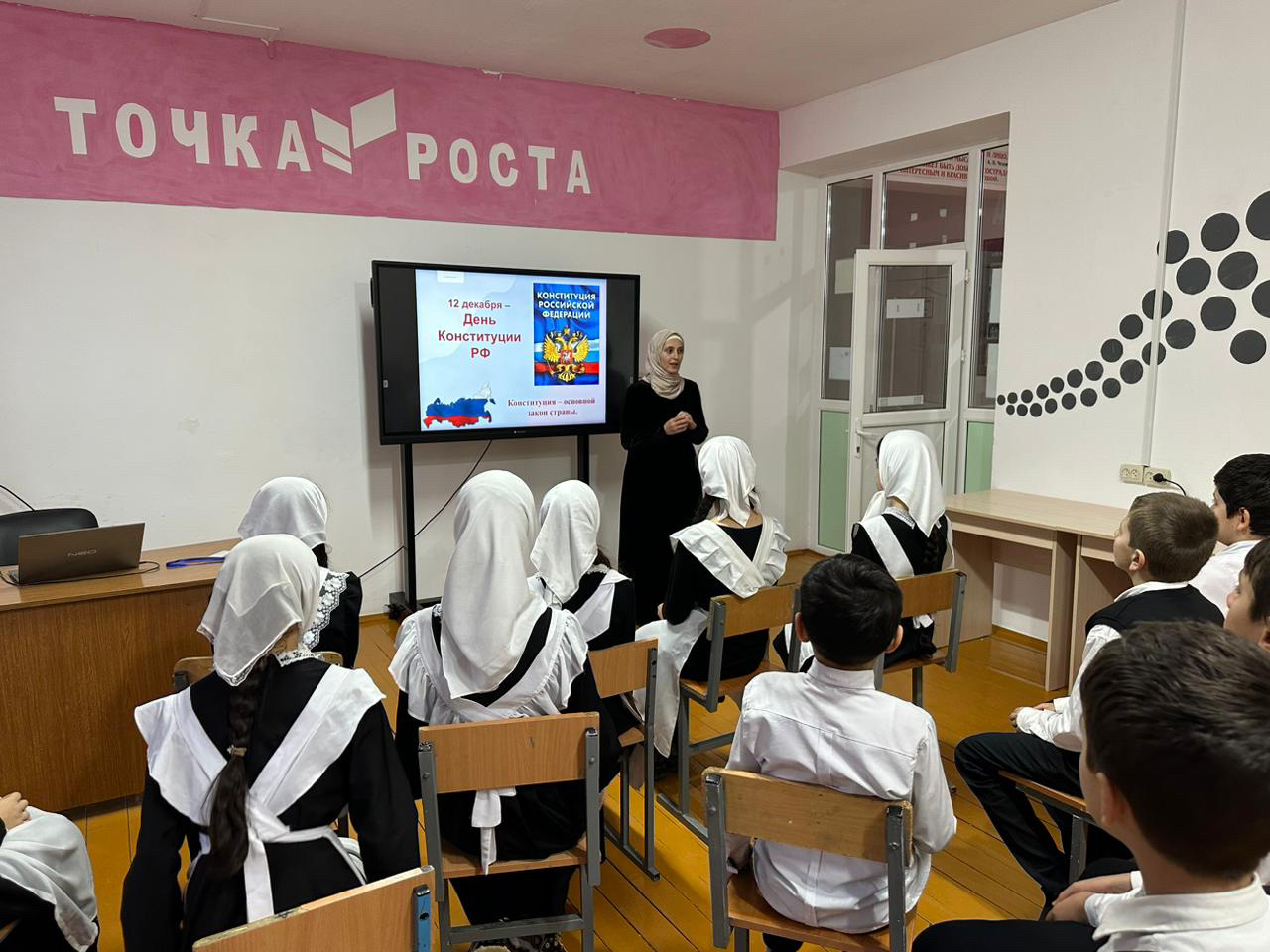 Во взаимодействии с Отделом в Ножай-Юртовском районе УФСБ России по Чеченской Республике 07.12.2024 г. в МБОУ "СОШ им. В.Г.Гайтемирова с. Замай-Юрт» проведены тематические классные часы, посвящённые Дню Конституции РФ