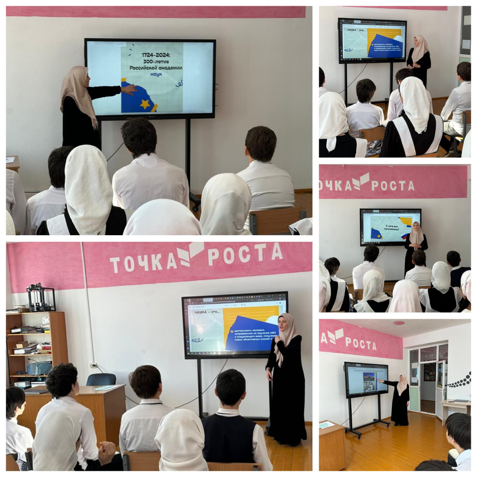 20.12.2024 в МБОУ "СОШ им В.Г.Гайтемирова с. Замай-Юрт", заместитель директора по ВР Джамалуева М.В. провела с обучающимися 9-11 классов, Всероссийский классный час " 300- летие Российской академии наук"